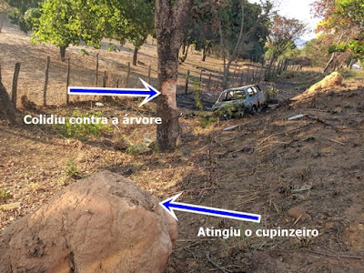 De acordo com informações, um casal seguia no veículo VW/Voyage sentido Riachão das Neves/BA, quando o mesmo perdeu o controle na curva, atravessou a pista, bateu primeiramente num cupinzeiro que serviu de rampa, voou, colidiu contra uma árvore às margens da BR e poucos instantes depois pegou fogo.