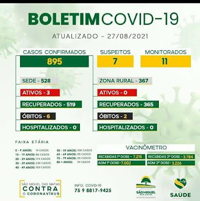 Número de novos casos da covid-19 cai em São Miguel das Matas