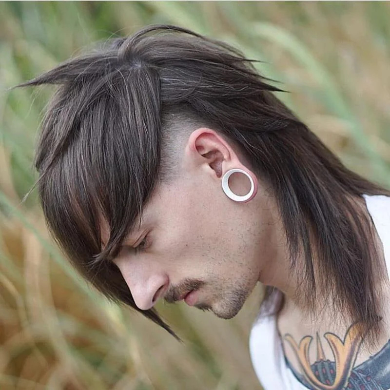 Perfeito para quem busca um visual diferenciado, o mullet totalmente raspado dos lados é ideal para cabelos mais compridos.